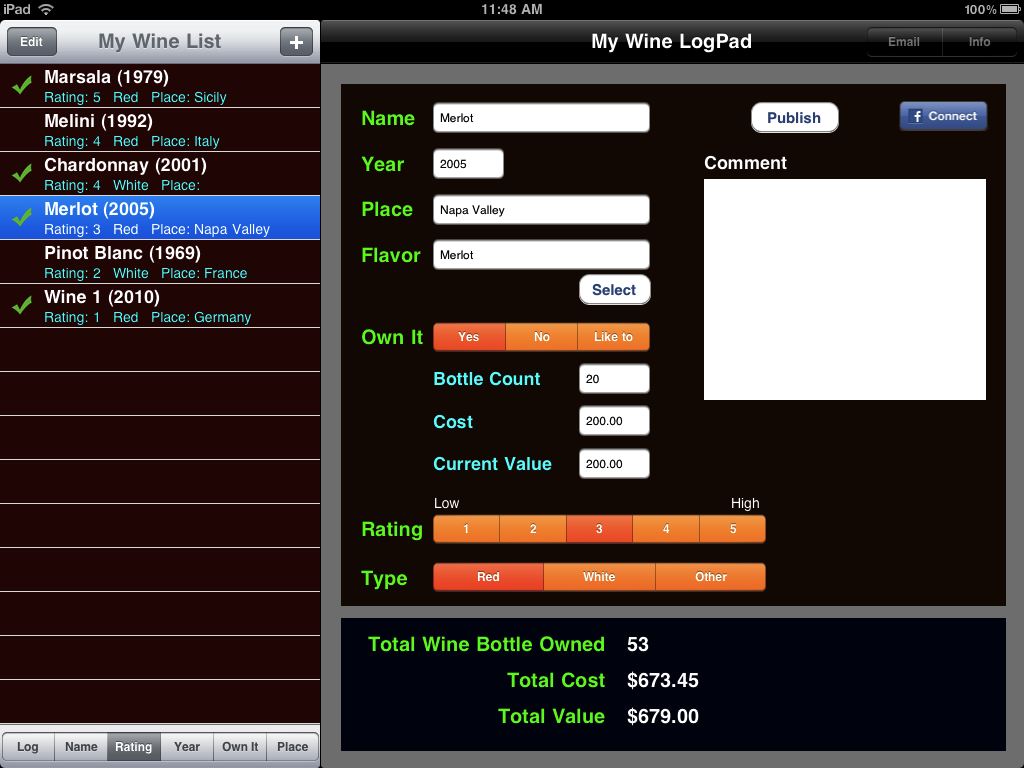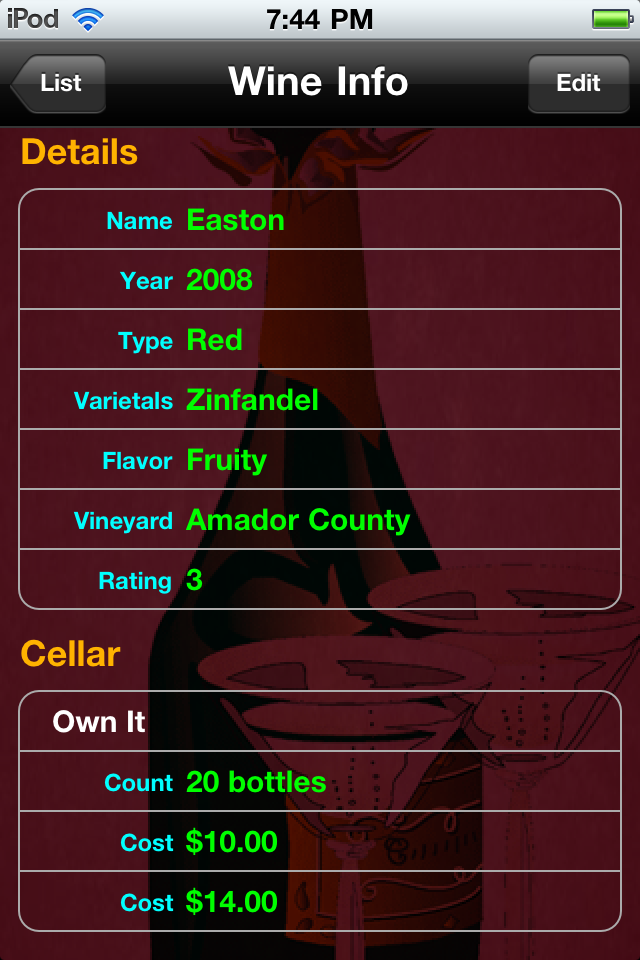 My Wine List (and My Wine LogPad) is an application for all Wine lover. It helps user to keep track of wine they own and/or tasted or even would like to own (your own wine wish list).